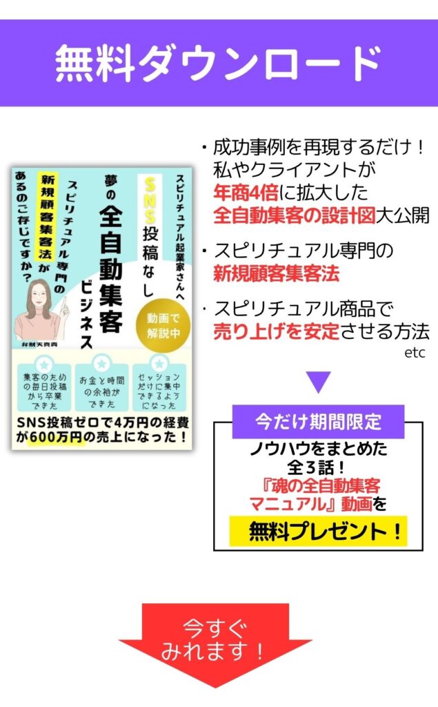 宇宙マーケティング全自動集客マニュアル大公開maki-g-d 2025.06.02 自動の仕組み化で自由に売り上げる“魂の全自動集客マニュアル”無料動画講座 お名前 メールアドレス 特定商取引法の表記 | プライバシーポリシー